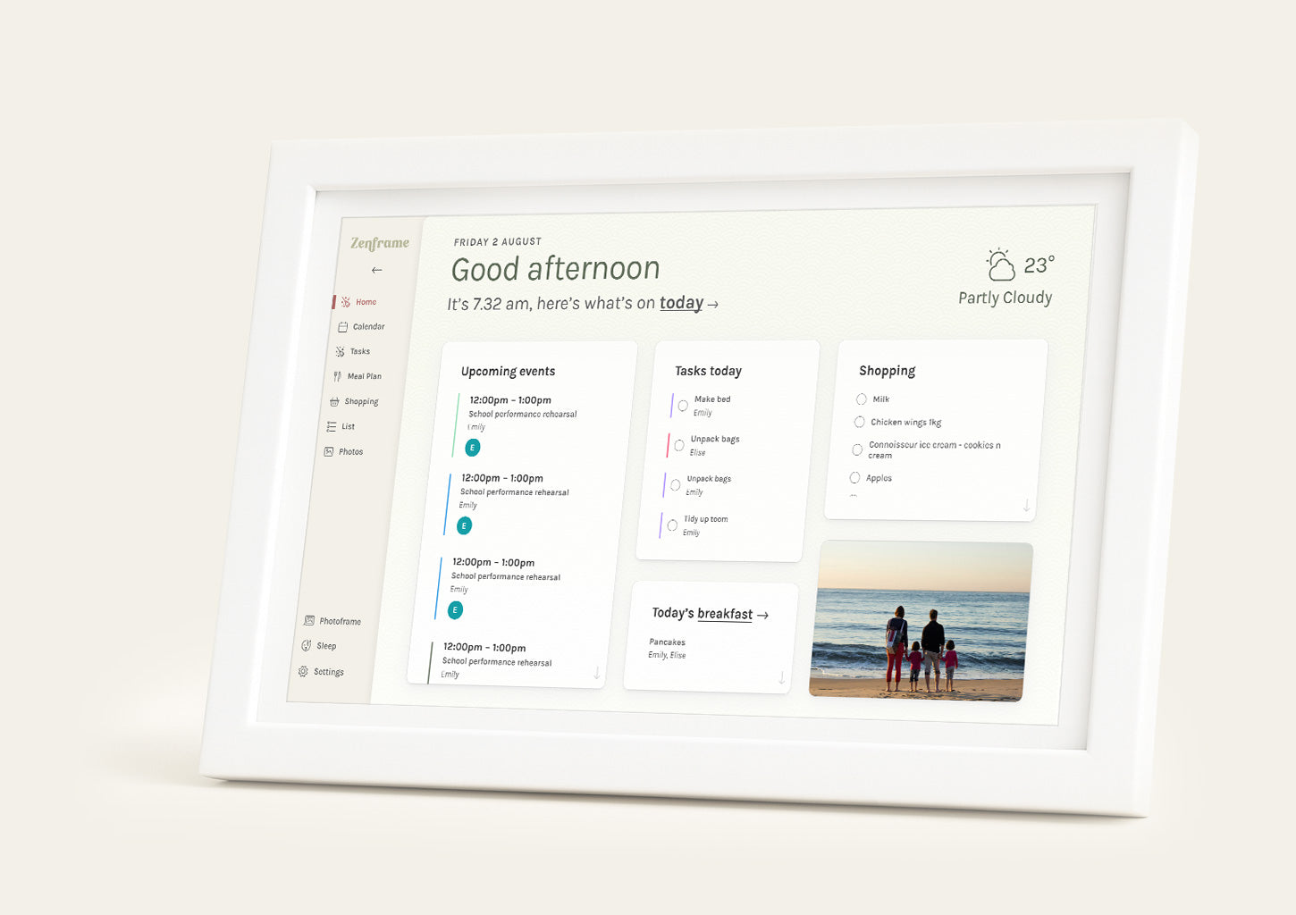 Calendar, tasks, meals, lists and photos - together on a dedicated home display, to organise your life.